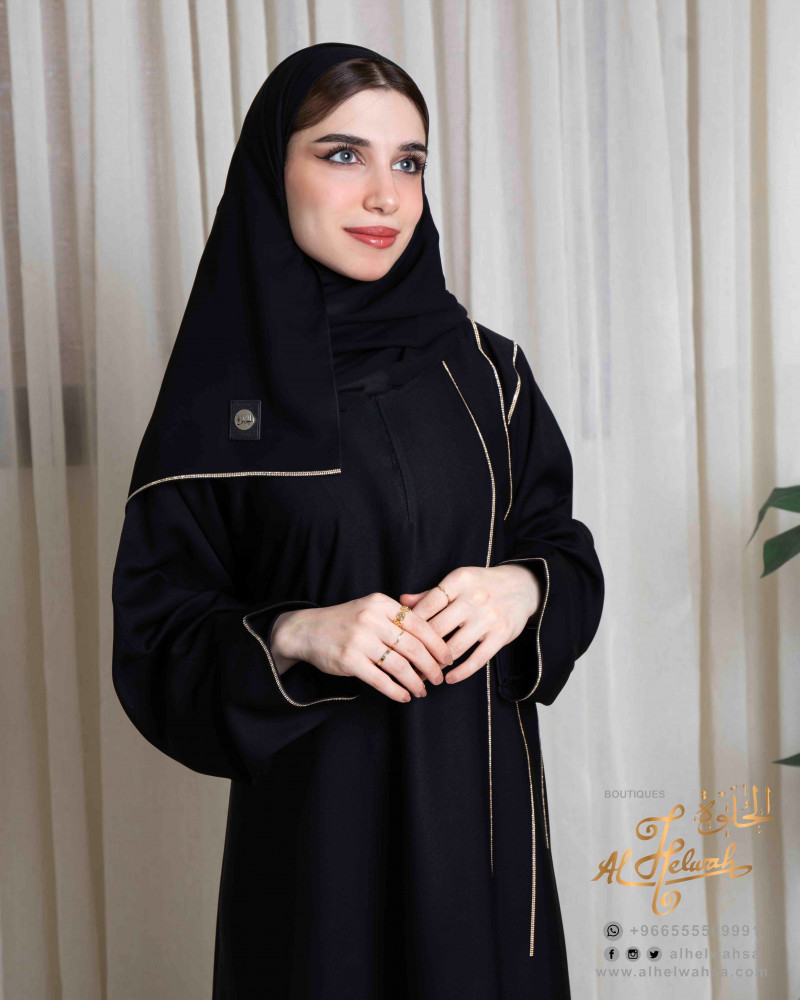 عباءة كريب برسمات كرستال سوارفسكي على الصدر والكم موديل مقفول