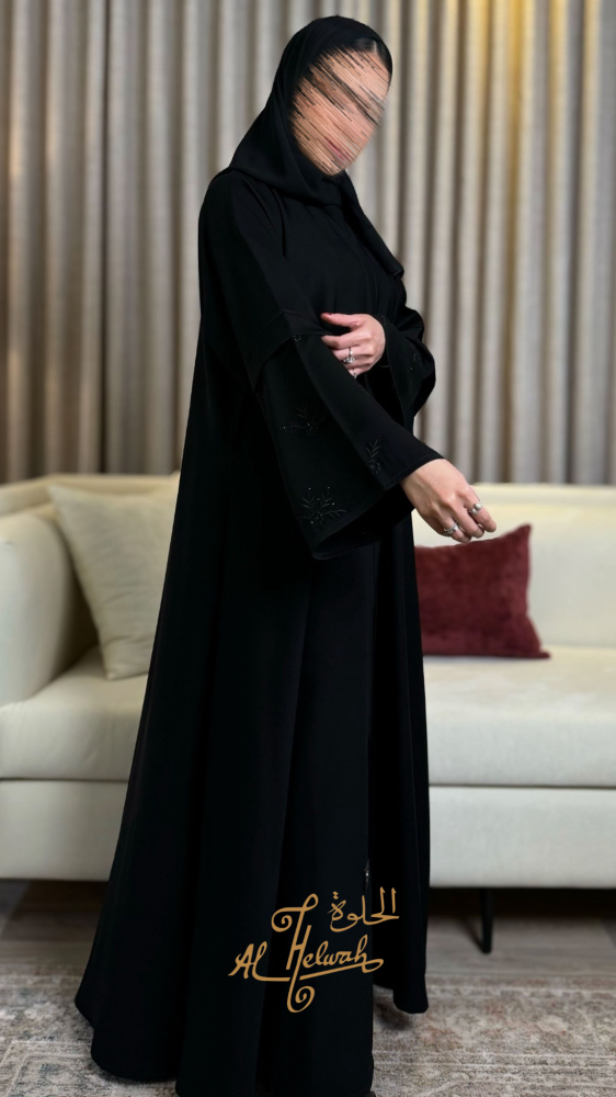 عباية مفتوحة خامة كريب مطرزة على الاكمام