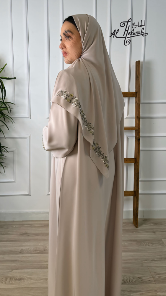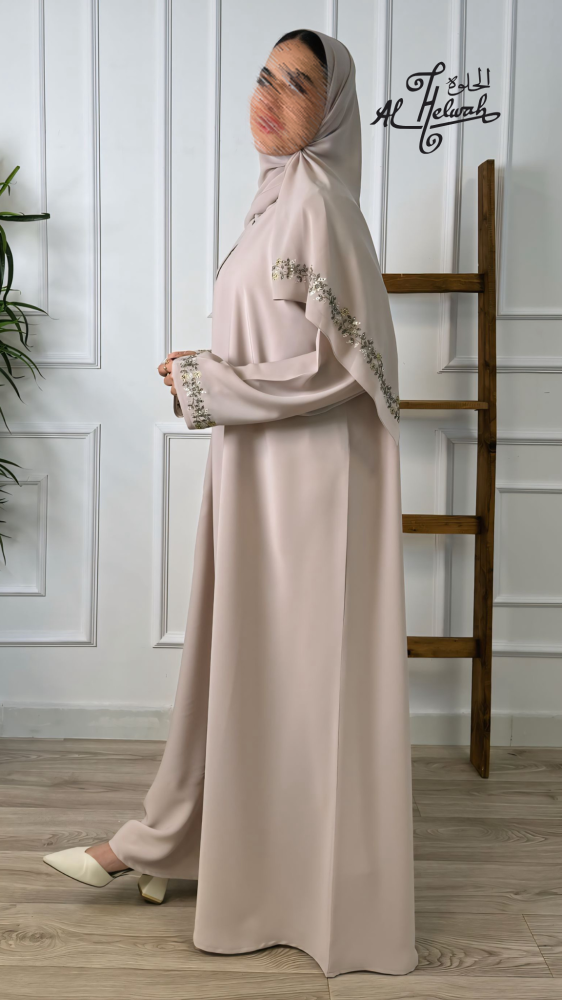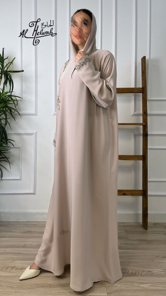 عباية مقفولة قماش ندى ملون مطرزة من جنب واحد